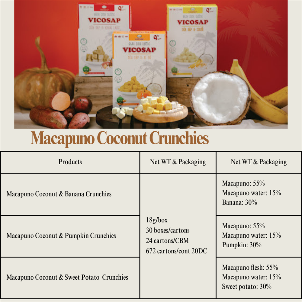 Chào mừng bạn đến với thế giới của hương vị tinh tế và dinh dưỡng hoàn hảo! 2dhC tự hào giới thiệu đến quý khách hàng sản phẩm Bánh Dinh Dưỡng Dừa Sáp - nơi hội tụ tinh hoa ẩm thực Việt Nam với ba hương vị độc đáo: chuối, khoai lang và bí ngô.