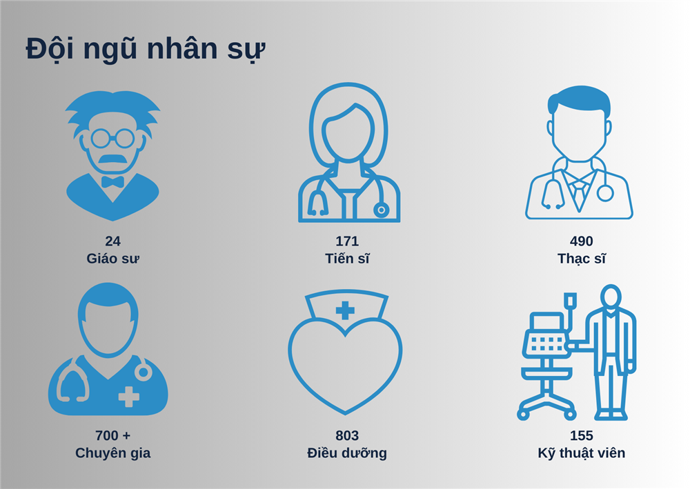 - Điều dưỡng và kỹ thuật viên: Hơn 500 điều dưỡng và kỹ thuật viên được đào tạo chuyên nghiệp, tận tâm và chu đáo với bệnh nhân.