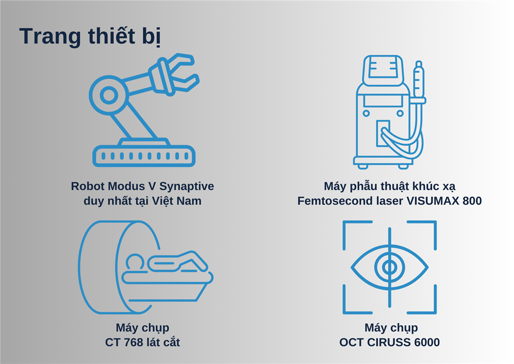 - Hệ thống phòng mổ hiện đại: Được trang bị các thiết bị tiên tiến như dao mổ siêu âm, hệ thống phẫu thuật nội soi, và các thiết bị hỗ trợ gây mê hiện đại.
