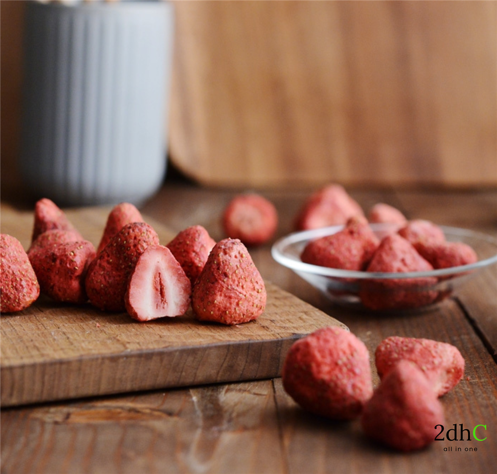 - Sấy lạnh (Freeze Drying): Phương pháp này giúp dâu tây sấy khô giữ được màu sắc tươi ngon, hương vị tự nhiên và hàm lượng dinh dưỡng tối đa. Tuy nhiên, chi phí sản xuất cao hơn so với phương pháp sấy nóng. 2dhC kiểm soát nhiệt độ, áp suất trong quá trình sấy lạnh để đảm bảo chất lượng sản phẩm tốt nhất.