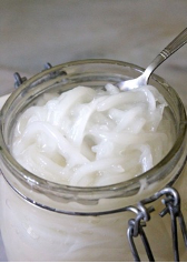 2. Dừa Sáp Sợi: Được làm từ cơm dừa sáp bào sợi, sên với đường, được chế biến thành dạng sợi đóng hộp ăn liền, có thể làm topping các loại nước uống như trà sữa, hoặc kết hợp với các loại sữa tươi không đường hay sữa chua không đường, thêm đậu phộng và nước đá làm nước uống rất ngon miệng. Ngoài ra, có thể phết lên bánh mì sandwich và rắc các hạt dinh dưỡng để ăn như một bữa ăn tiện lợi, giàu năng lượng hoặc làm nguyên liệu để làm bánh ngọt. Sợi dừa sáp dẻo dai, thơm ngon độc đáo.