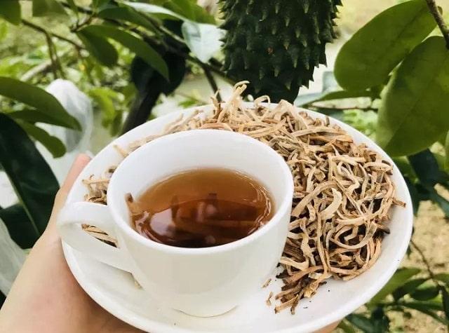 - Bước 2: Dùng khoảng 2-3 gram trà khô mãng cầu cho mỗi 200ml nước.