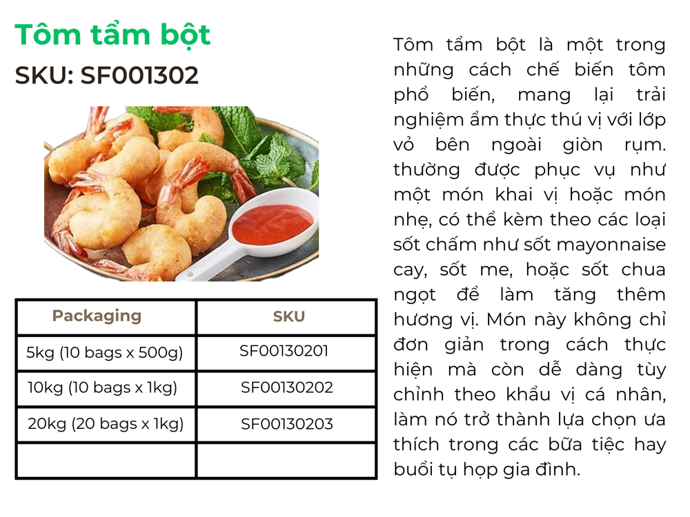- Tôm tẩm bột: Tôm được tẩm bột và chiên sơ, sẵn sàng cho việc chiên lại khi chế biến.