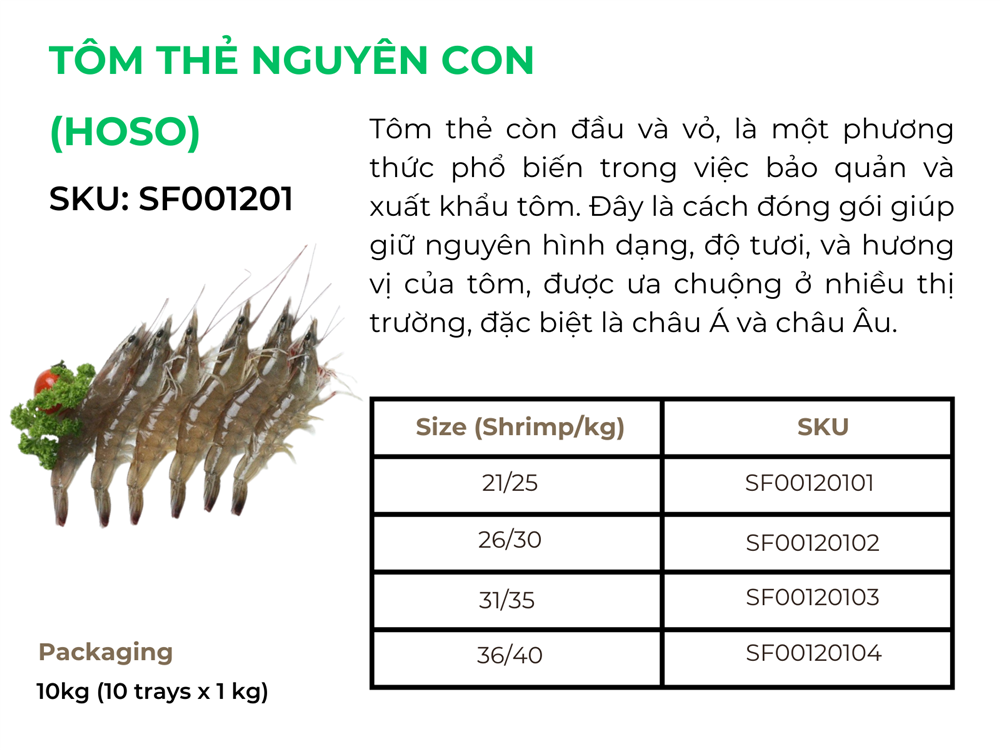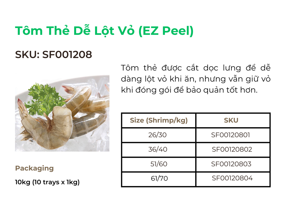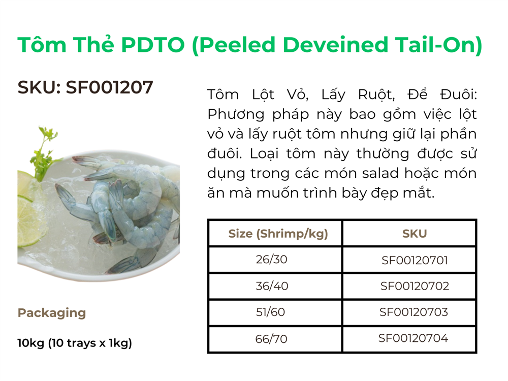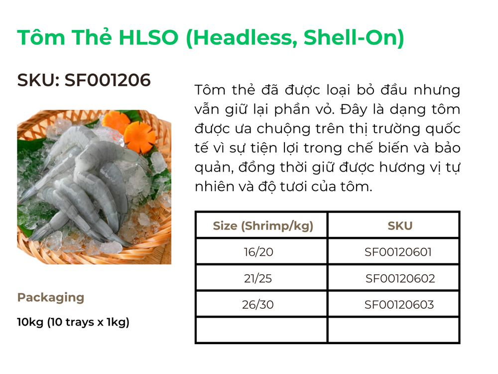 Sau khi đã điểm qua các quy cách đóng gói phổ biến của Tôm thẻ như HOSO (Head-On Shell-On), HLSO (Headless Shell-On), PTO (Peeled Tail-On), PDTO (Peeled Deveined Tail-On), và EZ Peel,... có thể thấy rõ sự đa dạng trong cách thức bảo quản và vận chuyển loại hải sản này để đáp ứng nhu cầu thị trường quốc tế. Mỗi quy cách đóng gói không chỉ tối ưu hóa việc bảo quản chất lượng tôm mà còn đáp ứng các tiêu chuẩn khắt khe của thị trường nhập khẩu.