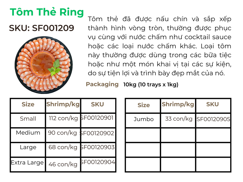 - Bao bì đẹp sang trọng - Giá thành phù hợp: Tôm thẻ được đóng gói trong bao bì thiết kế đẹp mắt và sang trọng, phù hợp làm quà tặng hoặc xuất khẩu. Giá thành hợp lý của sản phẩm phù hợp với cả thị trường nội địa và quốc tế, làm nổi bật giá trị thực sự của sản phẩm.