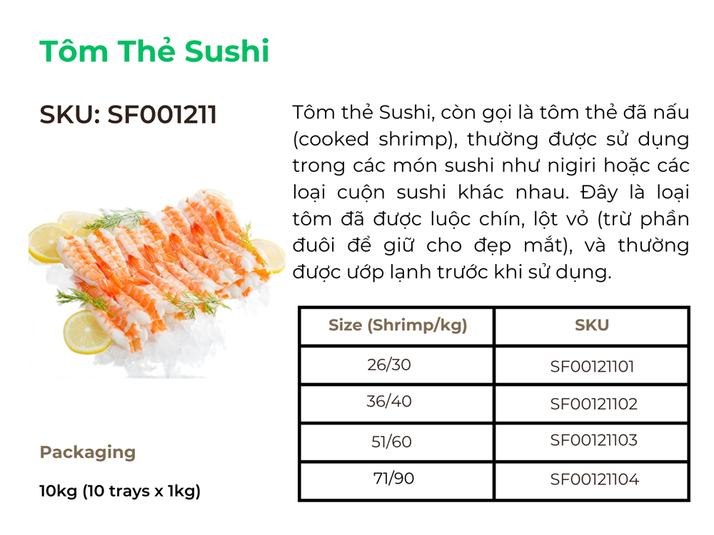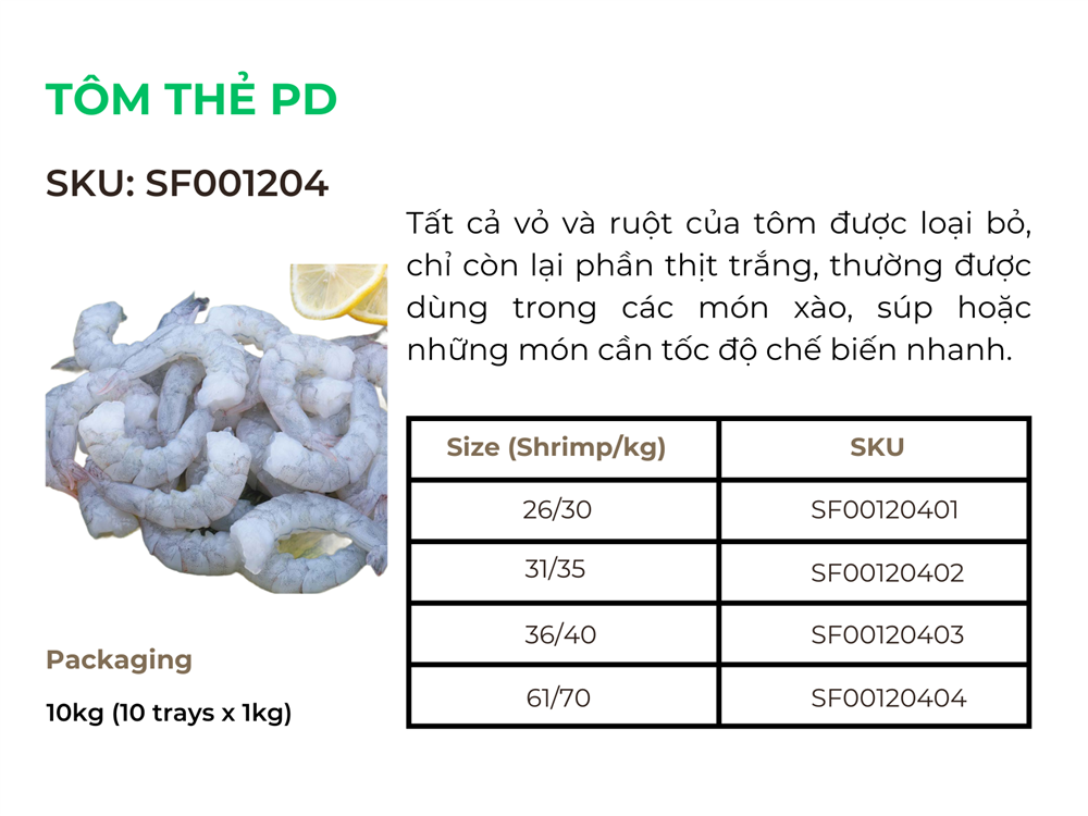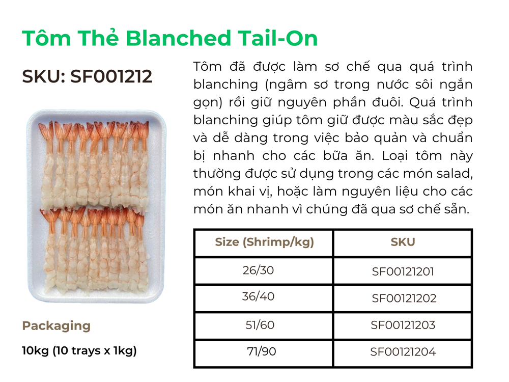 Tôm thẻ, với đặc điểm thịt ngon và giàu dinh dưỡng, được chế biến thành nhiều sản phẩm khác nhau để phù hợp với sở thích và nhu cầu ẩm thực đa dạng của người tiêu dùng trên toàn thế giới.