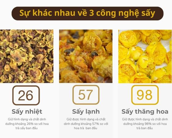 - Sấy nhiệt: Chi phí thấp hơn nhưng làm mất đi một phần lớn dinh dưỡng và hương vị.